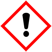 Exclamation MarkMeaning: Irritant to skin or eyes, skin sensitizer, acute toxicity (harmful), narcotic effects, respiratory irritation. |