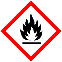 FlameMeaning: Flammables, pyrophorics, self heating materials, emits flammable gas, self reactive substances, organic peroxides. |